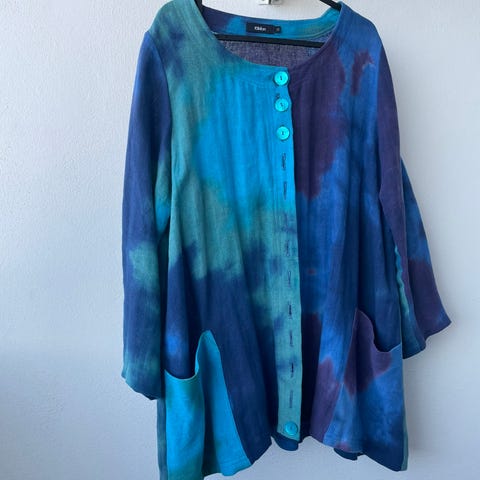 Valmistettu kotimaassa ladukkaasta pellavasta. Takki laskeutuu kauniisti päällä.