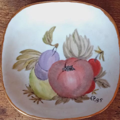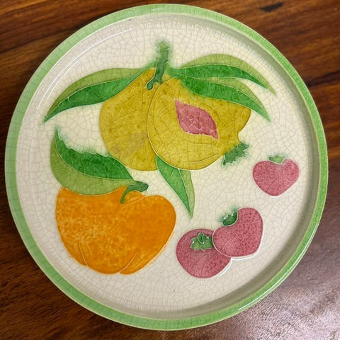 H&M Home lautanen, jossa on omena-kuvio. Lautanen on valkoinen ja valmistettu keraamisesta materiaalista. Sopii keittiövälineeksi ja astiastoksi.