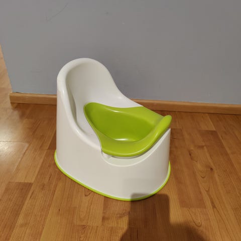 Ikean potta, jossa vanha, mutta edelleen toimiva pottatarra. Mukaan vaippapaketti, jossa 25 vaippaa jäljellä.