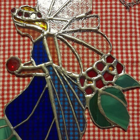 Sininen,virkattu koriste ikkunaan tai muualle