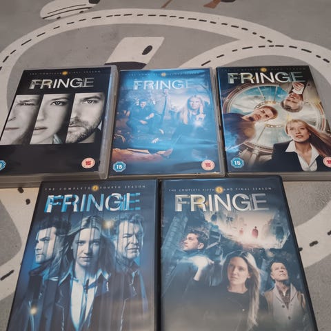 Fringe The Complete Series DVD-boxi sisältää koko televisiosarjan. Pakkaus sisältää useita DVD-levyjä, joissa on kaikki sarjan jaksot.