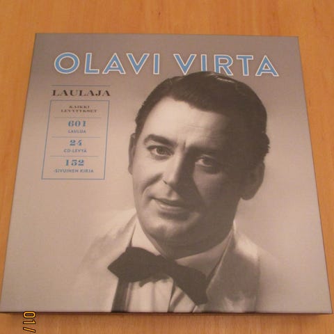 Olavi Virta kokoelma, 24 kpl cd-levyä, koko tuotanto ja kirja. Olavi Virta Laulaja -kirja sisältää mustavalkoisia valokuvia ja tietoa Olavi Virtan urasta. Kirjan sivumäärä on 101, ja siinä on 25 eri valokuvaa sekä 152 sivua tekstiä. Kirja on painettu Suomessa ja se esittelee Olavi Virtan elämää ja uraa laulajana.