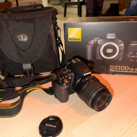 Todella hyvässä kunnossa oleva Nikon 3100 järjestelmäkamera. Ei mitään naarmuja linssissä! Laturi ja laukku tulevat mukaan!