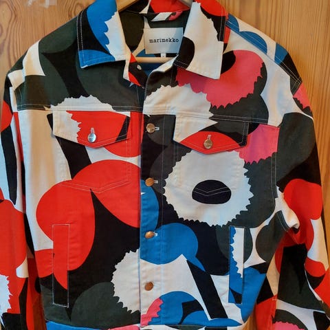 Marimekon vaaleanpunainen farkkutakki
