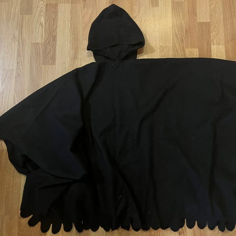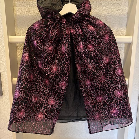 Hyväkuntoinen lasten musta viitta esim. halloween-juhliin. Koko 75 cm. Kiinnitys tarranauhalla kaulan kohdalta. Mieluiten vain nouto Espoon Henttaalta.