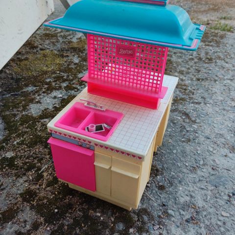 Käytetty,leikitty ja käytönjälkiä löytyy mutta ehjä. Uunissa liikkuva luukku. Saa kasaan. Tarran jälkiä. Menee leikeissä hyvin edelleen. Huom,sopii barbie nukeille,ei ole barbie-merkkinen tämä.