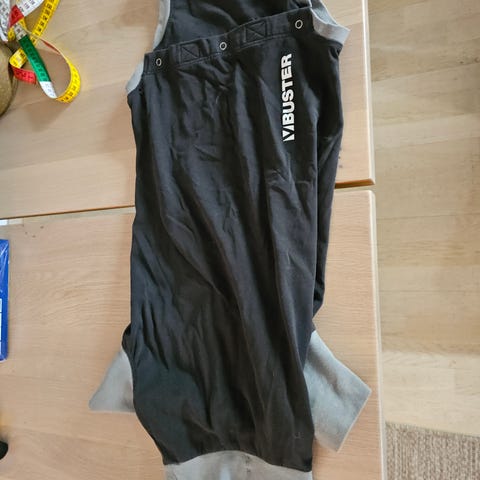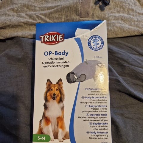 Yhden leikkauksen jälkeen koiralla käytetty suojabody.