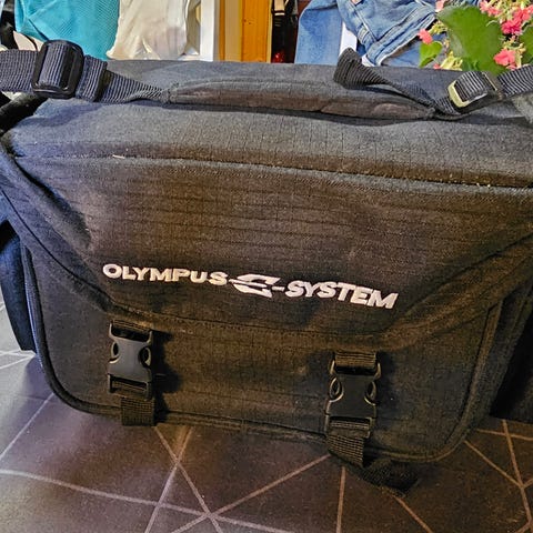 Etsinnässä kuvan puuta tummempi Olympus kameralaukku. Joskus nähnyt liikkeessä myynnissä mutta enään ei ole tullut vastaan. Malli on retro olkalaukku.