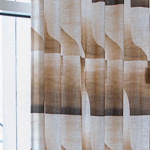 Amarona Collection verhot. Mitat: yksittäisen verhon leveys 144,5cm ja korkeus 186,5cm. Väri: ruskea, meleerattu. Materiaali: 75% polyesteri, 25% puuvilla.