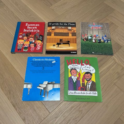 Pieni pianisti 2 -kirja. (1989) kansissa hienoista kulumaa. Viidellä sivulla lyijynämerkinnät, muutamalla tussi. Siisti kirja . 8e