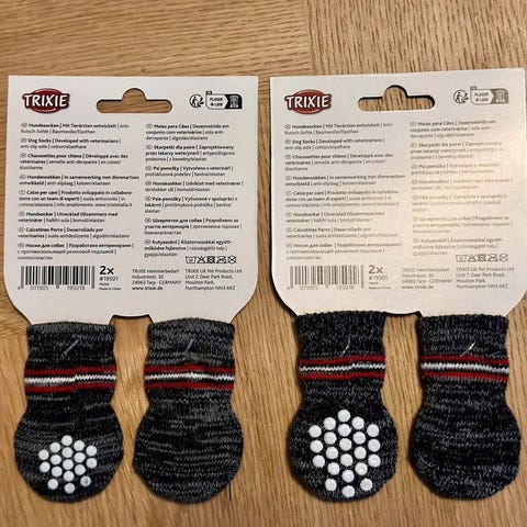 Uudet koiran liukuestesukat koossa L (4kpl). Tilattu Diivadogilta, mutta olivatkin koiralleni liian pienet. Ei kokeiltu jalassa eli on ihan käyttämättömät.