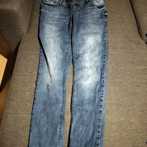 Kuin uudet äitiysfarkut, trikoisella vyötärökappaleella. Tummansiniset. Koko 36, pituus 30. Vain nouto.