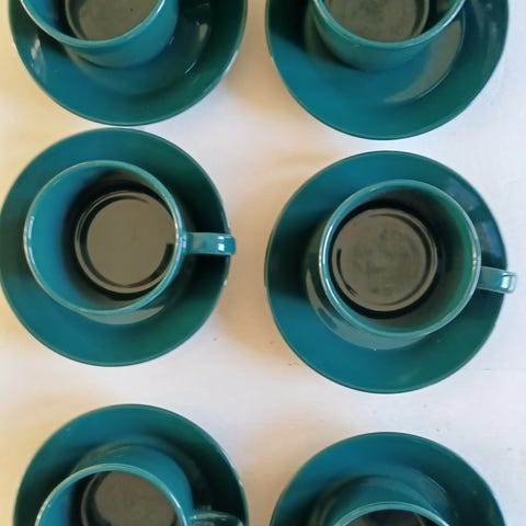 Teema kahvikuppi ja lautaset ehyet siistit 4 vihreää 4 sinistä 2 keltaista en postitan vain nouto käteinen