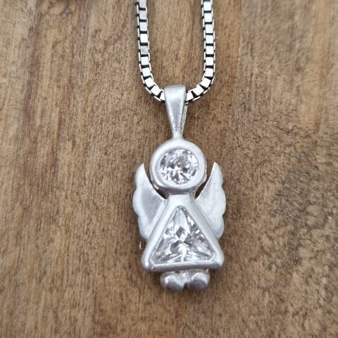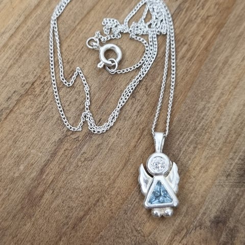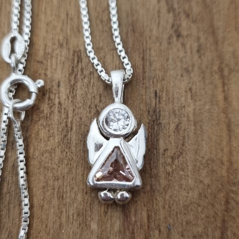 Suojelusenkeli kaulakoru kuukausikivellä. Kesäkuun kivi on lila.