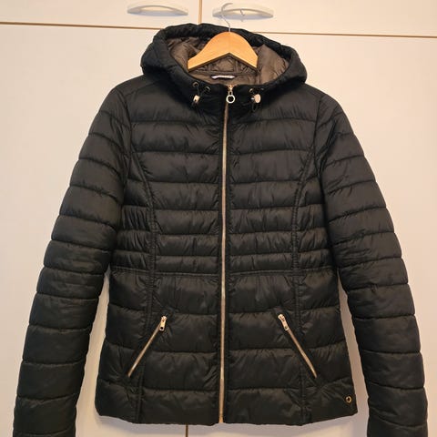 Erittäin lämmin S.Oliver tummansininen untuvatakki. Muuten oikein hyvässä kunnossa, mutta ruskeissa somistetereissä kauluksessa ja hihansuissa paikoin kulumaa.