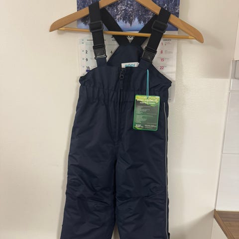 Hyväkuntoiset, lämpimät, mustat housut. Päällinen, vuori ja vanu 100% polyester. Tehty toisista housuista irrotettavat henskelit hävinneiden tilalle.