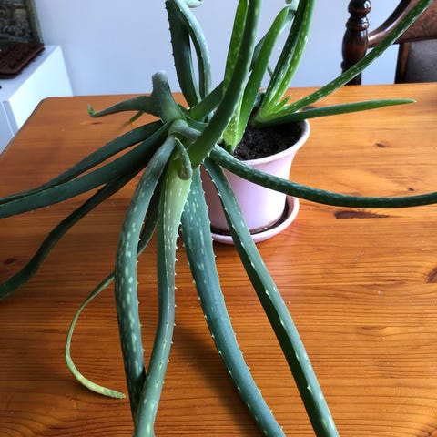 Aloe - kasvi saviruukussa. Kasvi on mehikasvi, jolla on paksut, vihreät ja piikikkäät lehdet.