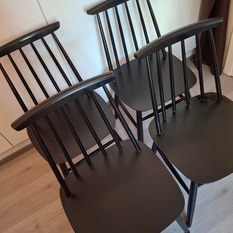 Myydään 6 kpl kuvan design tuoleja mustalla rungolla ja vihertävällä verhoilulla. Tuoleja on olemassa 18 kpl ja ne myydään 6 kpl:n erissä. Ilmoituksen hinta on yhdelle 6 kpl:n erälle.