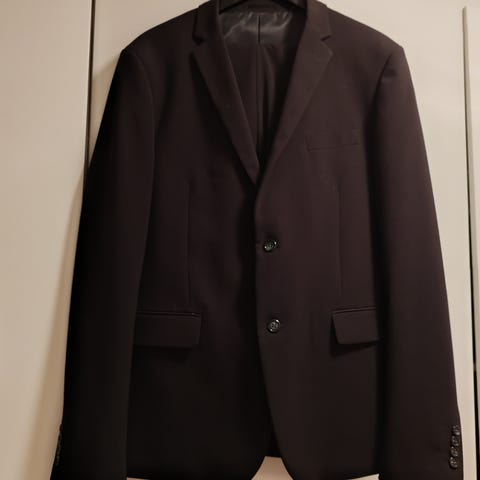 Myydään erittäin hyvässä kunnossa oleva miesten musta puku. Takissa ei kokoa, housut 48. Ollut käytössä miehellä, jonka pituus 185cm ja vastaa kokoa M. Slim fit.