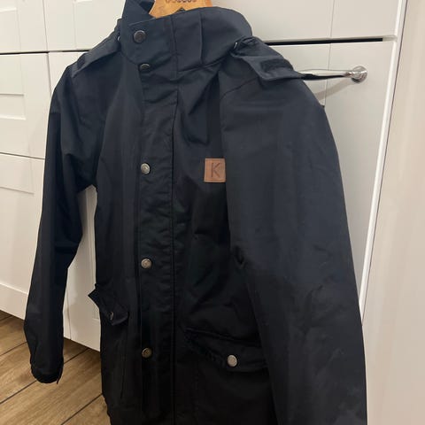 Erittäin hyväkuntoinen, uskaltaisin väittää jopa lähes uudenveroiseksi, talvitakki koossa 152. Koko on reilu, menee hyvin myös 158 kokoisella. Todella kaunis ja erittäin lämmin takki hyvillä ominaisuuksilla. Karvareunus on irroitettava ja meillä ollut käytössä vain kovemmilla pakkasilla. Hihansuissa peukaloaukot.