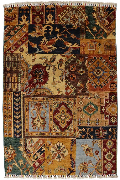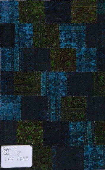 Moderni ja minimalistinen käsinsolmittu matto, jossa yhdistyvät perinteinen käsityötaito ja optinen taide. Vaalealla pohjalla kolme tummansinistä suorakulmiota, joiden aaltoilevat kuviot luovat syvyyttä ja liikettä. Reunoja kiertää hillitty sininen kehys, joka viimeistelee kokonaisuuden.