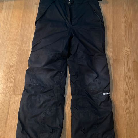 Mustat Everestin ulkohousut. Slim- malli. Vetoketjutaskut x 3. Lahkeessa tarrakiristysmahdollisuus. Polvissa pientä käytön jälkeä (ks. kuva).
