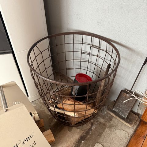 Rautaharakoitten käsityönä rautalangasta valmistettu rautalankakori. Taidokasta käsityötä, ostettu aikanaan myyjäisistä/markkinoilta.