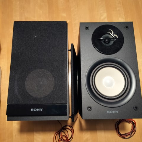 Sony SRS-A60 kaiutinjärjestelmä, väriltään musta. Käyttää 1,5V paristoja (8 kpl) tai DC 9V virtalähdettä. Malli on valmistettu Japanissa. Kaiuttimet soveltuvat äänen toistoon erilaisissa käyttötarkoituksissa.
