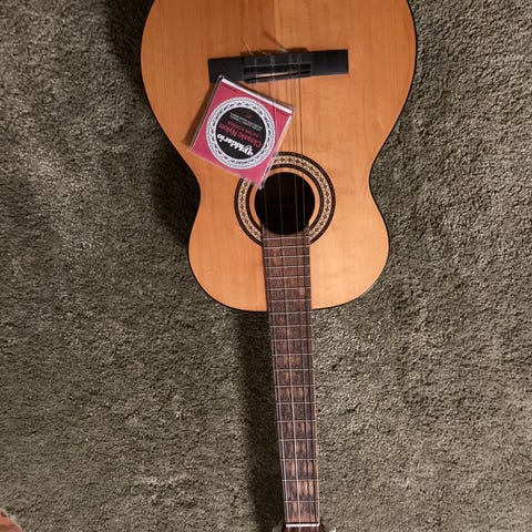 Hyvin pidetty (ei juuri soitettu). Siisti, ei kolhuja eikä naarmuja. Säilytetty kotelossa. Vaatii huollon, uudet kielet ja yhden pienen napukan virityskoneistoon (näkyy vikassa kuvassa).