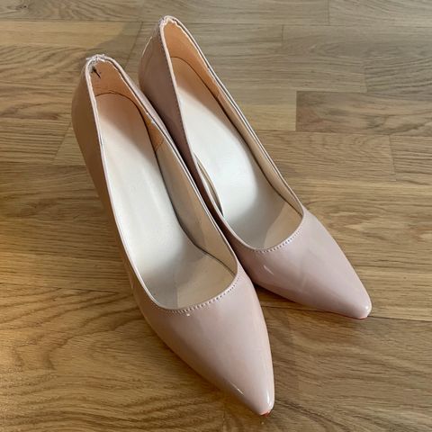 Korkokengät, koko 40. Kengät ovat beigen väriset ja valmistettu keinomateriaalista. Korko on paksu ja tukee käyttöä. Kengät sopivat monenlaiseen käyttöön, kuten arkeen ja juhlaan.