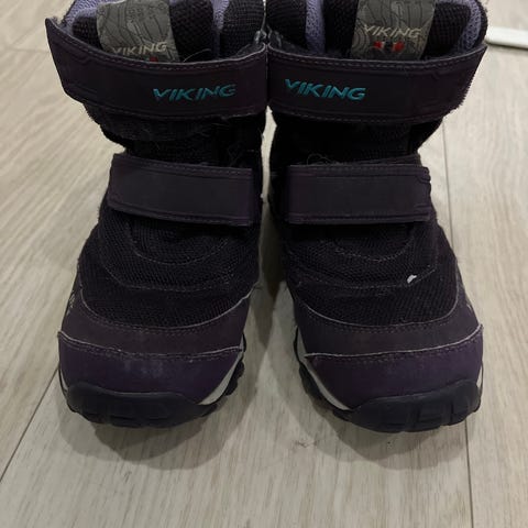 Viking lasten talvikengät, koko 33, sininen väri. Uutena ostetut, kahdella käytetyt muiden kenkien ohessa. Ominaisuudet jäljellä. Pohjallisen pituus 21cm, mutta ne kannattaa vaihtaa uusiin.
