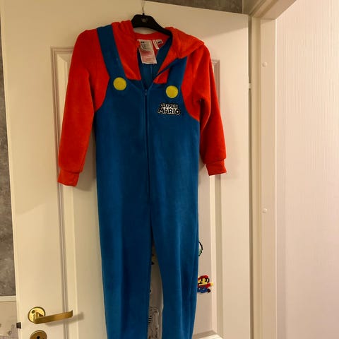 Tämä lapselle sopiva virallinen Super Mario Bros. ™ -naamiaisasu koostuu Super Mario -pelihahmon haalarista, lipallisesta hatusta ja viiksistä. Naamiaisasun pitkähihainen sinipunainen haalari jäljittelee kuuluisan putkimiehen alkuperäisvaatetusta. Haalarissa on selkäpuolelta joustava vyötärö ja siihen on kiinnitetty kaksi keltaista muovikoristenappia. Super Marion punainen hattu on valmistettu vaahtomuovista ja sen lipan yläpuolella on punainen M-kirjain ympyränmallisella valkoisella pohjalla. Viimeistele naamiaisasu synteettisistä hiuksista valmistetuilla tummanruskeilla viiksillä, joissa on itsekiinnittyvä liimapinta. Suuntaa kohti uusia seikkailuja videopelien suosikkihahmoksi muuntautuneena tässä Super Marion naamiaisasussa, joka sopii esimerkiksi lastenjuhliin, naamiaisiin, esityksiin, teemajuhliin, synttäreille tai vapun juhliin.