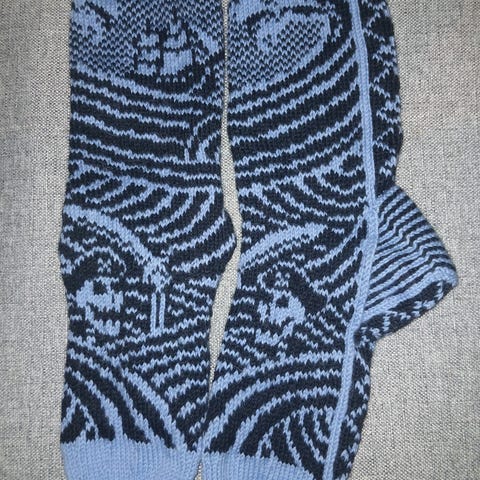 Koko 44-45. 7-veljestä langasta neulotut villasukat. 80% villaa ja 20% polyamidia.