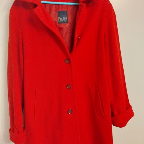 Italialainen Talvitakki harmaana, naisten koko 36. Materiaali koostuu 80 % villasta ja 20 % polyamidista. Takissa on fleece-vuori, joka tarjoaa lisälämpöä. Valmistettu Italiassa, merkiltään Lama Vergine.