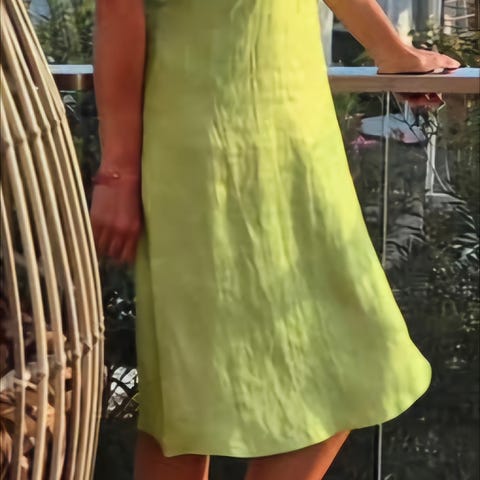 Ellos Kesämekko on sininen kesämekko, joka on valmistettu puuvillasta. Mekko on naisten koko S/M. Siinä on lyhyet hihat, napitus edessä ja vyö vyötäröllä.