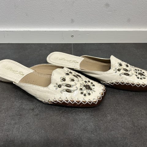 Mokkajäljitelmää olevat lähes käyttämättömät pistokkaat, koko 36. Käyvät juhliin tai kesällä käyttökengiksi.