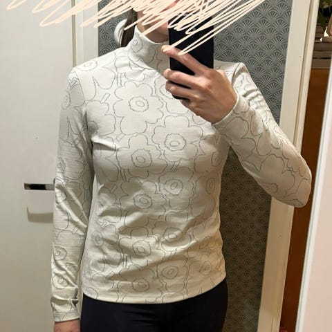 Marimekko Jäkälä Unikko poolopaita, koko M, mutta vastaa mielestäni S kokoa. Venyvä materiaali ja miellyttävän tuntuinen päällä. Todella siisti kunto ja puhdas. Hieman rypyssä säilytyksestä.