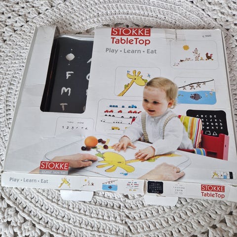 Stokken tarjotin ja vaihtokuvat. Kaksi imukuppia tallella ja reuna hiukan lohjennut. Meillä on silti toiminut käytössä hyvin.