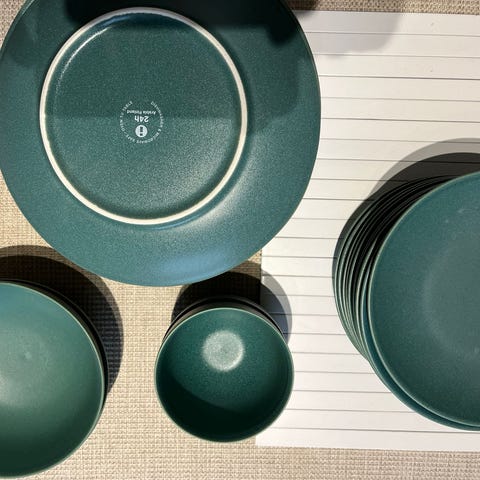 Vihreät Arabian 24h astiaston matalat ja syvät lautaset.