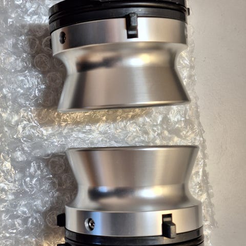 Oheisten kuvien siistit ja hyväkuntoiset NAB-adapterit 10,5" alumiinikeloille esimerkiksi Revoxin tai Studerin kelanauhureihin. Käy kaikkiin trident-keskiöllä oleviin nauhureihin. Ilmoituksen kuvissa adapterit ovat kiinni Revox PR 99MK3 nauhurissa.
