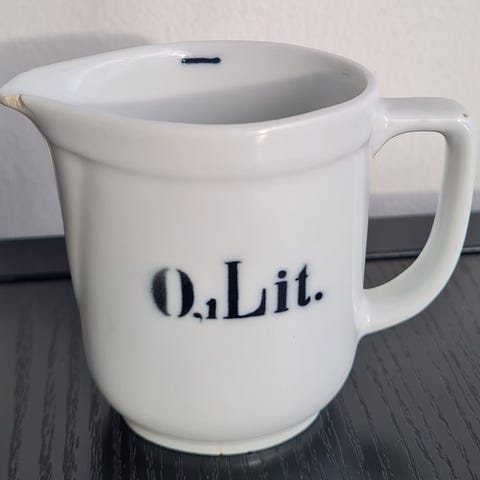 Myydään Arabian mittakannu 1L yläreunasta pala lohjennut, 5e