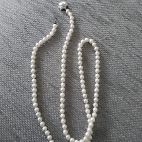 Viljelty Helmi kaulakoru Korun lukko on koristeellinen ja valmistettu hopeasta. Kaulakorun pituus on 15 cm ja helmet ovat tasaisesti asettuneet.