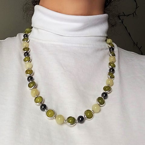 Viljelty helmi kaulakoru, vihreä.