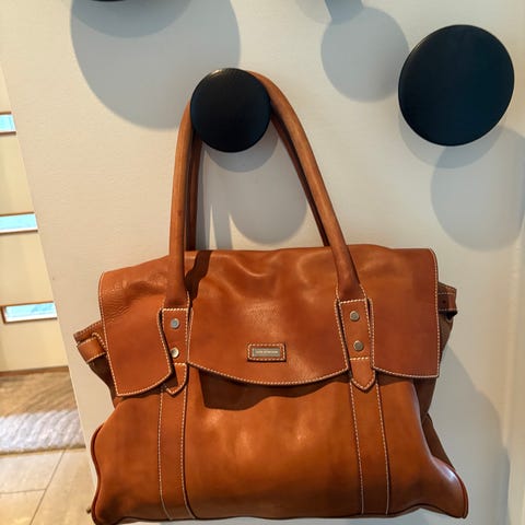 Leveys n. 38, syvyys 14 cm, korkeus 35 cm. Materiaali: 100% nahkaa.