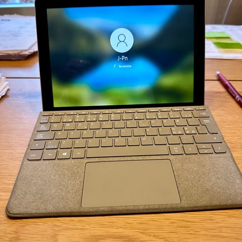 Microsoft Surface Pro X, jossa on kosketusnäyttö ja irrotettava näppäimistö. Väriltään musta, mukana kosketuskynä. Sopii sekä kannettavaksi tietokoneeksi että tablettikäyttöön.