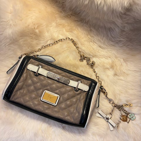 Käyttämätön Guessin ruskea laukku kultaisin yksityiskohdin. Laukussa pieni pussukka etutaskussa sekä irrotettava pitkä hihna. Postitan tarvittaessa.