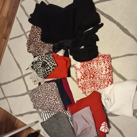 Myydään vaatesetti kokoa L/XL. Vaatteet ovat uutena ostettuja, ehjiä, tahrattomia, osa uudenveroisia. Esimerkiksi farkut ja Peak Permormancen collegetakki ovat uudenveroisia.