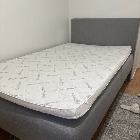Erittäin hyväkuntoinen kahden hengen sänky. Neutraali harmaa sävy, joka sopii monenlaisiin sisustuksiin.