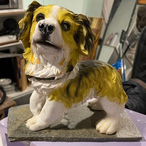 Koira patsas marmorialustalla