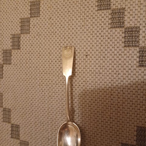 Lusikan edessä siisti kaiverrus. Lusikan pituus 12,3 cm.